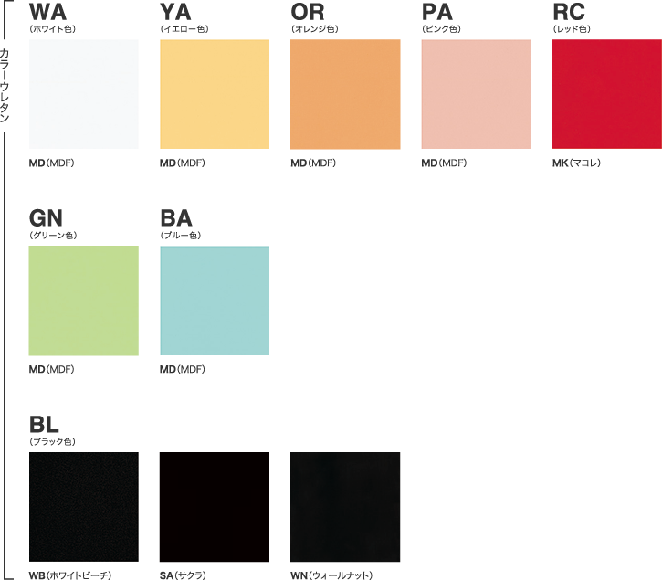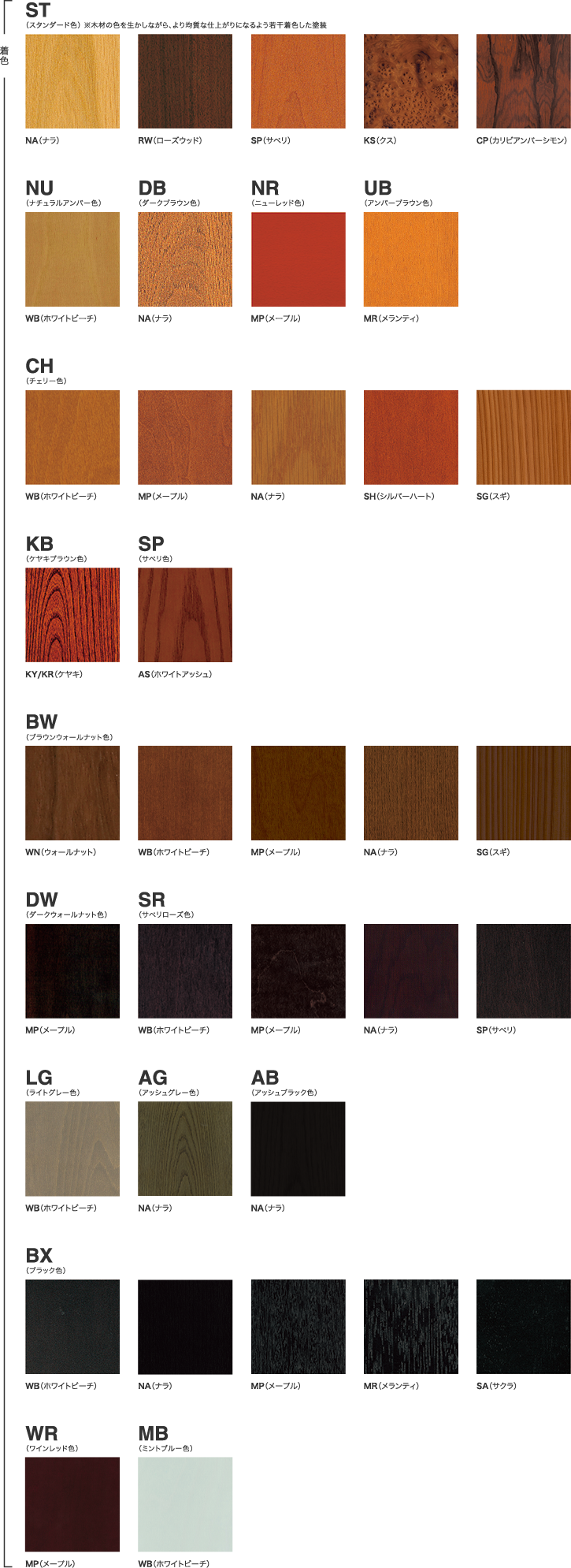 ここでは、当社製品に使用されている木部カラーの記号とその名称を紹介します。